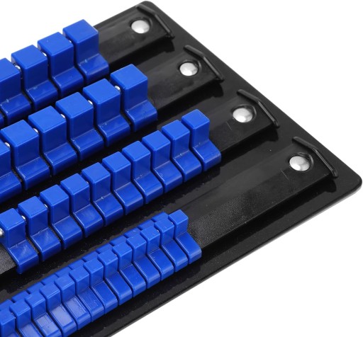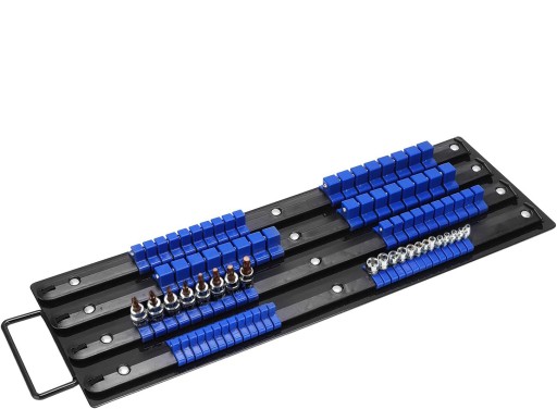 Zestaw szyn na nasadki kluczy nasadowych z 80 klipsami do nasadek 6,3 mm (1/4"), 10 mm (3/8"), 12,5 mm (1/2")
