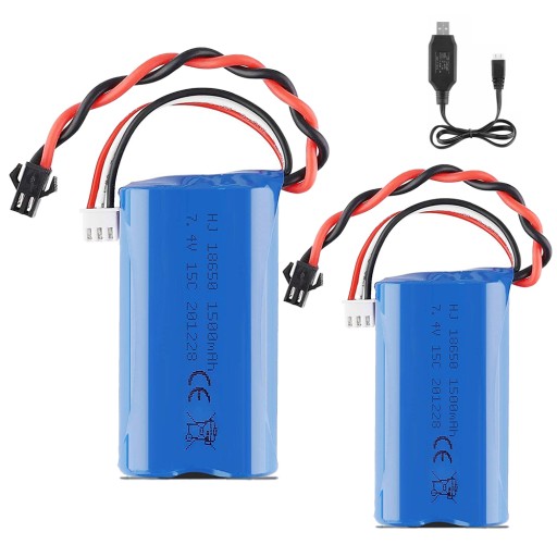 Литий-ионный аккумулятор 7,4 В, 1500 мАч с зарядным устройством USB, 2 шт.