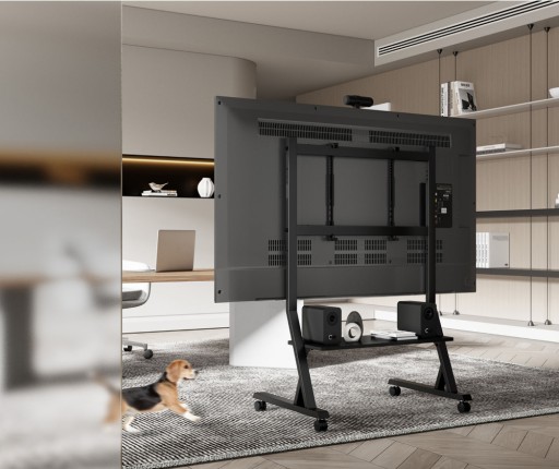 Mobilny stojak z uchwytem do telewizora 45-90" na kółkach. Posiada mocne kolumny nośne oraz system ukrywania przewodów. Idealny do sal konferencyjnych, sal wykładowych, salonu czy do pokoju telewizyjnego. Dzięki mocnym i cichym kółkom transport telewizora staje się prosty i bezpieczny.