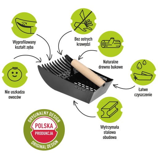 Zbieraczka ta, odpowiednio używana, będzie z powodzeniem służyć przez długie lata. Pozwoli Ci zebrać więcej owoców za jednym ruchem. Komfort użytkowania, wytrzymałość, odporność na rdzewienie, efektowna, kompaktowa forma - to tylko część zalet tego profesjonalnego narzędzia, które docenisz w praktyce.