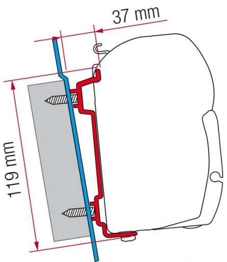 Adapter do markizy F45S marki Fiamma umożliwia przymocowanie markizy do auta.