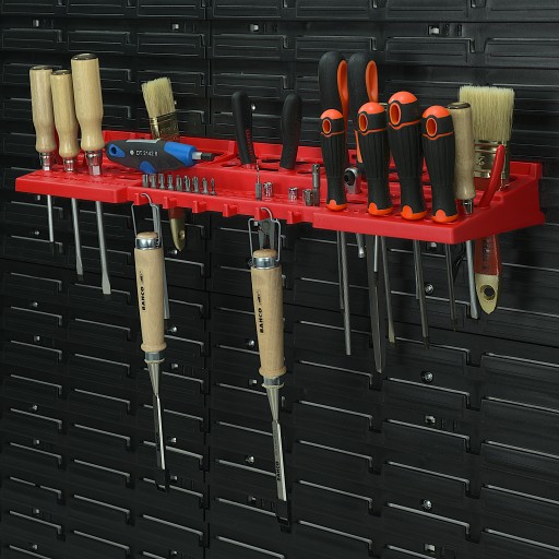 ⭐ Tablica została wyposażona w wysokiej jakości listwy i pojemniki, uchwyty oraz haczyki. Umożliwia to przejrzyste przechowywanie różnych elementów wyposażenia warsztatów : śrubokrętów, pilników, dłut i innych narzędzi z okrągłym uchwytem.