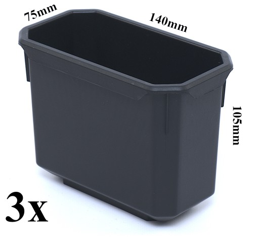 ✔️ 3x POJEMNIK OTWARTY CZARNY 140x75x105 mm
