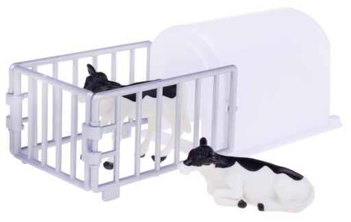 Zestaw składa się z 3 elementów takich jak : budki dla cieląt, 3 barierek i 2 cielaków - zapewnić frajdę podczas wspaniałej zabawy !