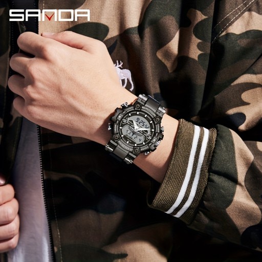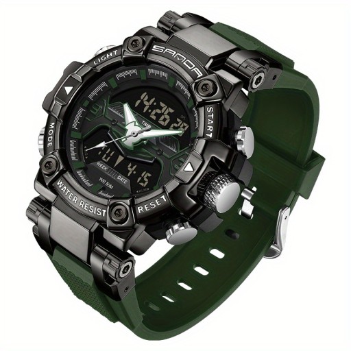 Мужские спортивные часы, цифровые водонепроницаемые кварцевые часы со светодиодной подсветкой и большим размером