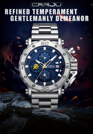1 шт. Мужские часы с большим циферблатом, многофункциональный хронограф со сталью