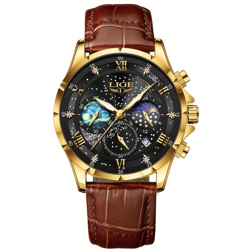 LIGE Casual Мужские кварцевые часы с тремя глазками, водонепроницаемое свечение