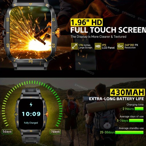 1 шт. мужские тактические военные умные часы, экран HD 1,96