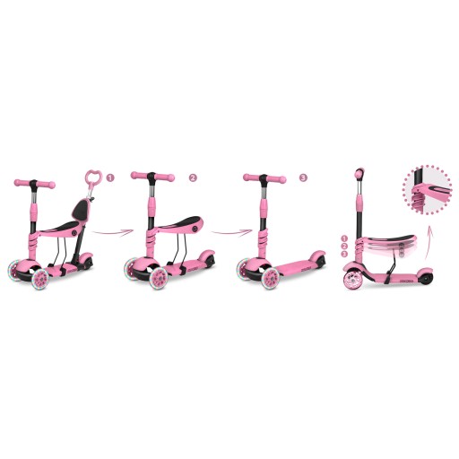 СКУТЕР ДЛЯ ДЕВОЧКИ, 3 В 1, БАЛАНС ТРИ КОЛЕСА, НАЖИМНОЕ КОЛЕСО, СВЕТОДИОДНАЯ ПОДСВЕТКА