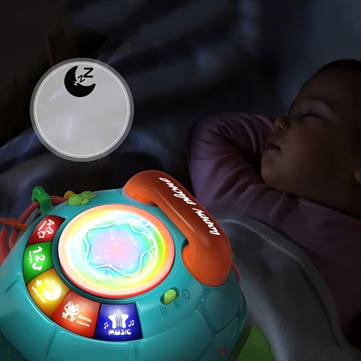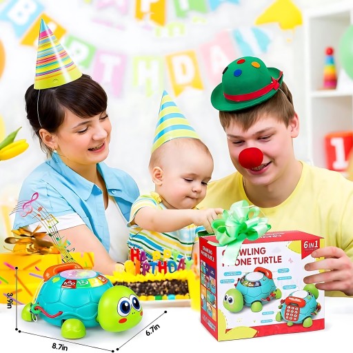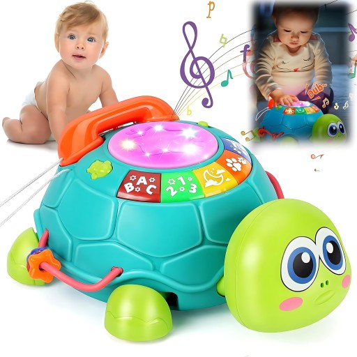 Naciśnij przycisk małego żółwia, a będzie się poruszał, kiwał głową i odtwarzał piosenki i muzykę ze światłem LED! Zachęci dziecko do gonienia i raczkowania.