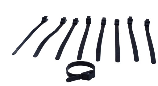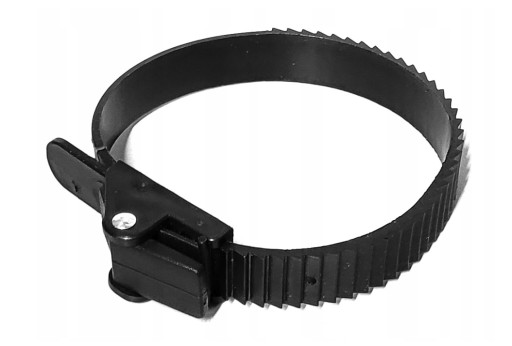 Pasek z tworzywa z klamrą do uchwytów rowerowych na dach, służy do mocowania koła do szyny uchwytu rowerowego.