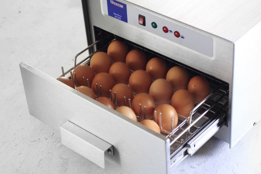 – Jednorazowo dezynfekuje 30 sztuk jaj lub 8 sztuk noży (o max. długości 30 cm)