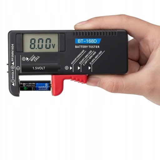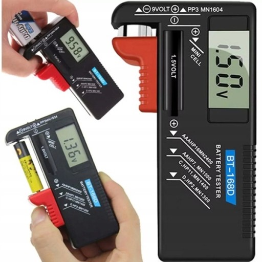 - Uniwersalny, wyposażony w wyświetlacz LCD miernik baterii, którym w łatwy i szybki sposób można zweryfikować aktualne zużycie i sprawność baterii/akumulatorów.