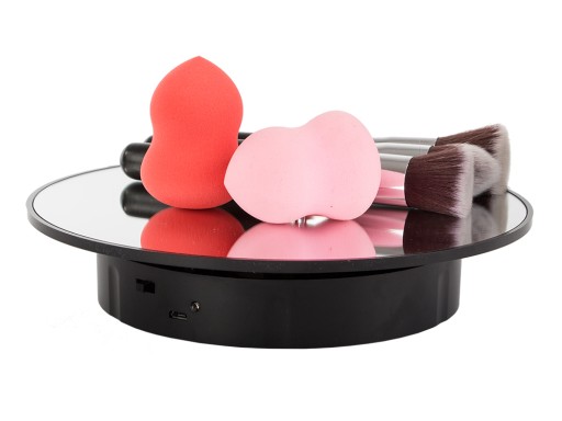Obrotowa podstawka do idealnie urządzenie do eksponowania biżuterii, zegarków oraz innych produktów. Urządzenie przyda się każdemu fotografowi, lustrzana powierzchnia nada zdjęciom niesamowity klimat oraz doda im uroku. Podstawka świetnie nada się do witryny sklepowej by eksponować wybrane towary.