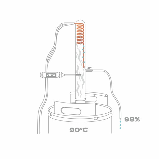 Najłatwiejsza w użyciu kolumna rektyfikacyjna – to nasz pewnik. Uzyskasz wspaniały destylat w mgnieniu oka. Wszystko, co musisz zrobić, to podłączyć wodę do chłodnicy, a reszta procesu sama się o siebie zatroszczy!
