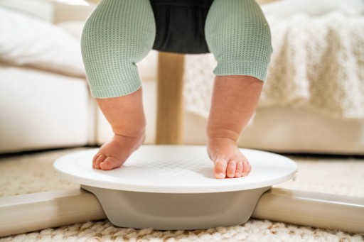Kiedy dziecko zacznie już samodzielnie siadać (ok szóstego miesiąca życia), możesz pozwolić mu siadać w centrum aktywności i korzystać z dołączonego podnóżka do balansowania, aby wzmocnić nogi i odkrywać różne doznania i tekstury stopami.