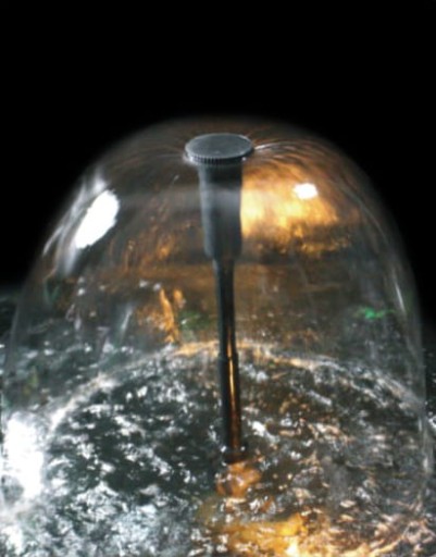 Pompa fontannowa 4500l/h, o podnoszeniu słupa wody H=3,2m i niskim zużyciu energii - pobór mocy to tylko 65W. Pompa posiada długi, 10m przewód zasilający, specjalnie zabezpieczony. Ponadto do pompy dołączony jest zestaw dwóch dysz fontannowych - fontanny ogrodowej. Pozwalają one na osiągnięcie efektu fontanny lub klosza.