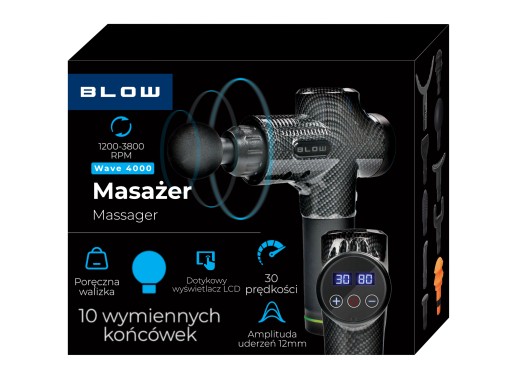 Masażer Blow to wielofunkcyjne urządzenie pozwalające na rozluźnienie jak i stymulowanie wszystkich grup mięśniowych. Dziesięć wymiennych końcówek masażera daje możliwość na pozbycie się codziennych dolegliwości bólowych, odzyskanie formy, regenerację po wysiłku, jak również odstresowanie się po ciężkim dniu.
