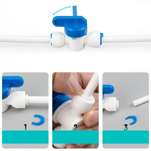 - Szybkie złącze do łatwej instalacji DIY bez użycia narzędzi. Za pomocą ostrego obcinaka do rur możesz samodzielnie przyciąć go do odpowiedniej długości rury