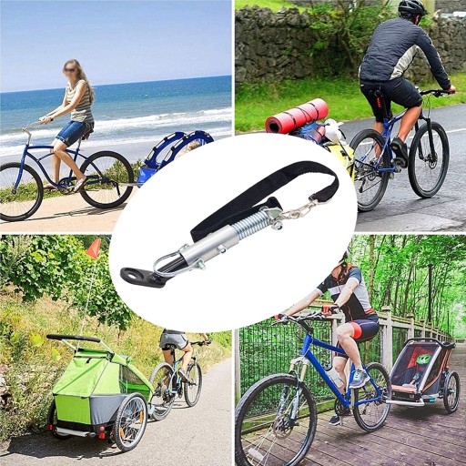 Hak do przyczepy rowerowej jest wykonany z wysokiej jakości taśmy wytrzymała stal i nylonowej, która jest mocna i trwała, nie ulega łatwo uszkodzeniu i może być używany przez długi czas. Powierzchnia przyczepki rowerowej jest pokryta czarną powłoką, która charakteryzuje się właściwościami antykorozyjnymi i dużą odpornością na zużycie. Jest to również niezawodna część. Można go używać do wymiany zużytych lub uszkodzonych części.
