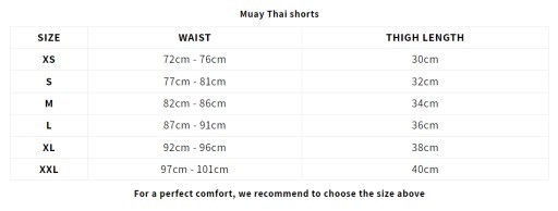 Aby zapoznać się z konkretnymi wymiarami tych autentycznych tajskich spodenek, zapoznaj się z tabelą rozmiarów.