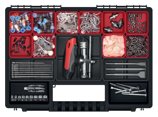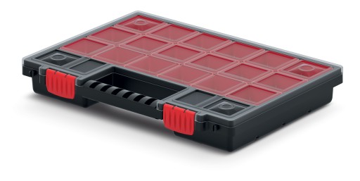 Organizer NORB Wytrzymały korpus z mieszanki polimerów. Ergonomiczna rączka. Odporna na uszkodzenia mechaniczne pokrywa z poliwęglanu. Funkcjonalne wyjmowane kubeczki wewnątrz. Wymiary: 344 x 249 x 50 mm.