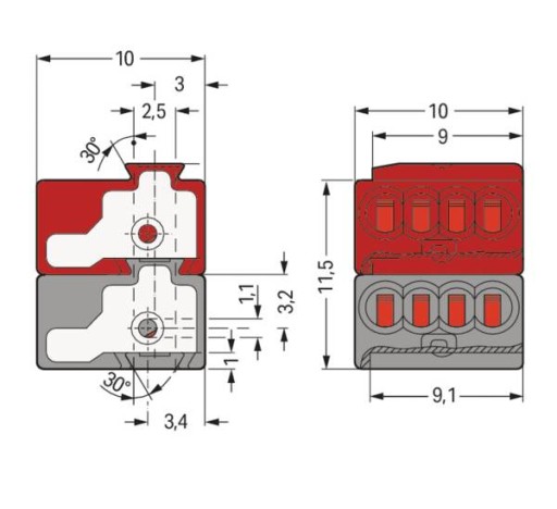 WAGO 243-212 4-Leiter-Buchsenklemme, серый/гельб