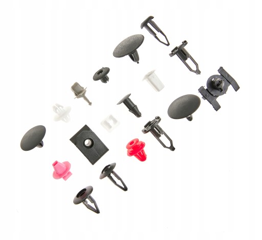 Zestaw plastikowych spinek do samochodów marki Toyota i Lexus. Opakowanie zwiera 18 typów spinek, łącznie 360 elementów. Całość zapakowana w pudełko z wygodnymi przegródkami.
