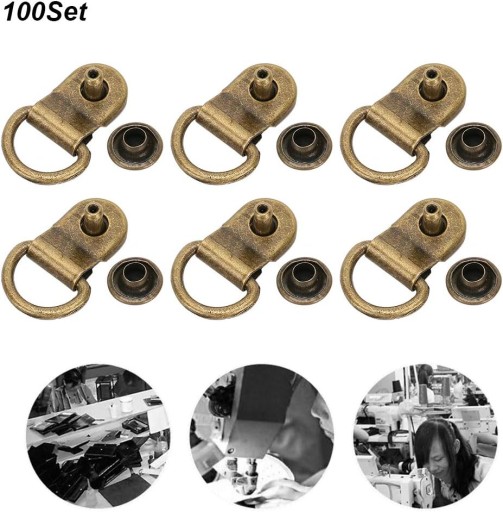 ①100 Zestawów Haczyk na Sznurowadła D Ring Oczko Klamra Mosiężny Haczyk na Sznurowadła Loop Ring