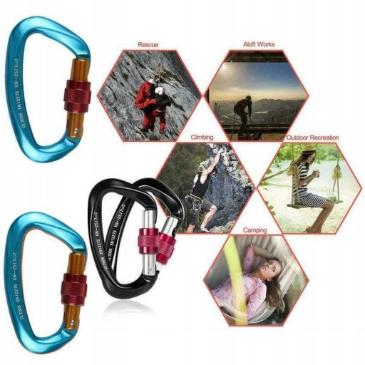 -Bardzo lekki i wytrzymały: ten karabińczyk ze śrubami 25kN waży tylko 63g, wymiary (dł. x szer.): Ok. 5,8x100mm. Otwarcie bramki wynosi 0,7 cala -SCREW GATE and Snag Free