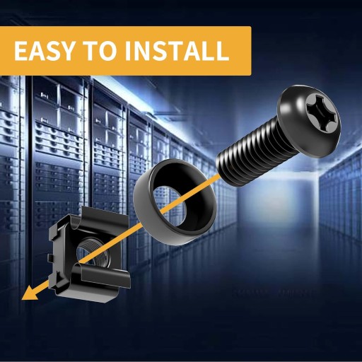 ①M6 x 16 mm stojak uchwyt nakrętki klatkowe, śruby i podkładki do montażu na stojaku szafki serwerowej, półki na serwery, routery, 50 sztuk śruby mocujące do stojaka i kwadratowe nakrętki wkładowe, samozaciskające opaski kablowe za darmo
