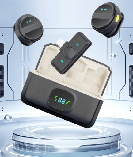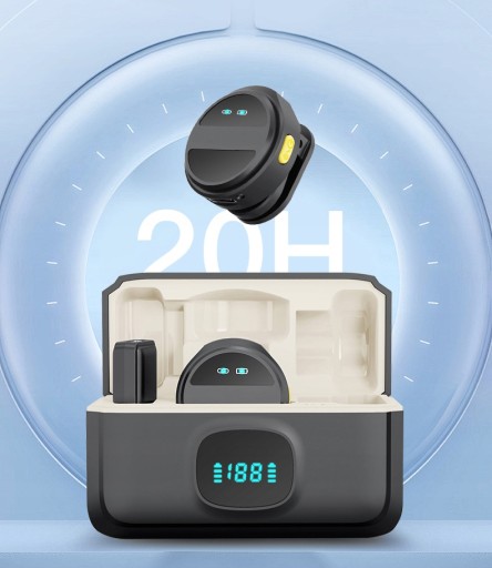 ✔️ W zestawie znajdują się dwa mikrofony bezprzewodowe z wbudowanym akumulatorem oraz powerbank 880mAh, zapewniający długotrwałe działanie.