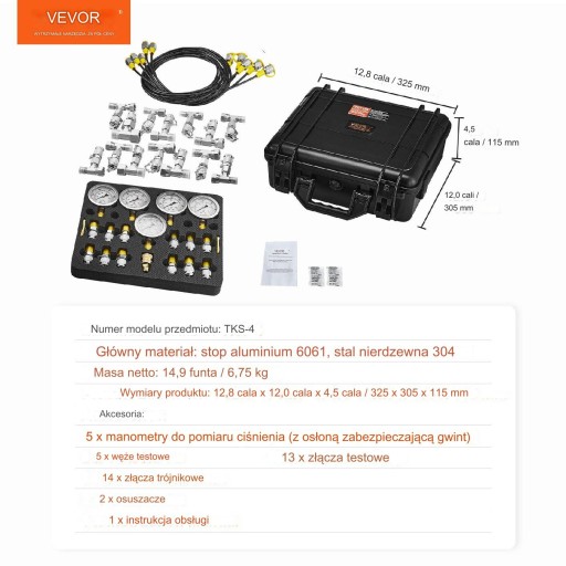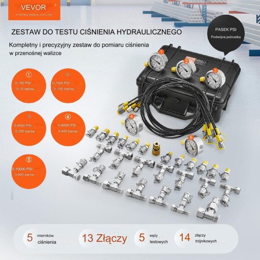 - Zestaw do testowania ciśnienia hydraulicznego, niezbędny w każdym zakładzie przemysłowym korzystającym z urządzeń hydraulicznych.
