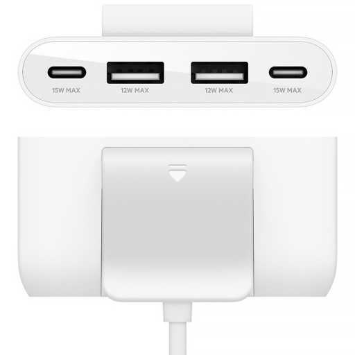 4-portowy hub rozdzielający moc firmy Belkin z kablem USB-C PD 30W, pozwoli rozdysponować moc z 1 portu USB-C PD Twojej ładowarki na aż 4 urządzenia mobilne.