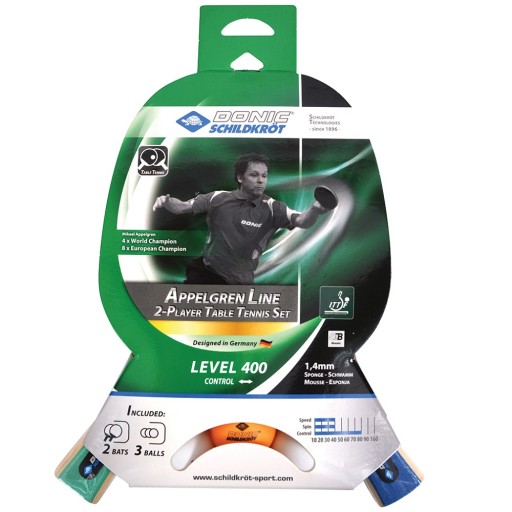 DONIC Appelgren 400 set jest idealny dla początkujących graczy bez specjalnego przygotowania i doświadczenia. Sprosta oczekiwaniom każdego świeżego miłośnika gry rekreacyjnej i amatorskiej w ping-ponga. Zestaw zawiera dwie rakietki i trzy piłeczki.