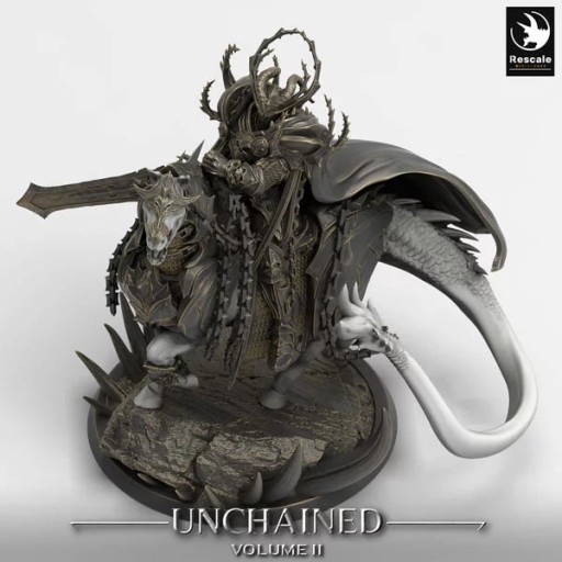 Oferujemy jedną figurkę Chosen Lord on Karkadan (Unchained Horse Warrior on Demon autorstwa Rescale Miniatures), wydrukowaną na drukarce żywicznej.