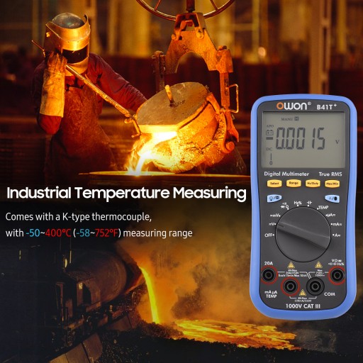 Pomiar temperatury -- W zestawie z termoparą typu K, ten inteligentny miernik oferuje szeroki zakres pomiarowy -50 ~ 400 ℃ (-58 ~ 752 ℉) do przemysłowego pomiaru temperatury, który zapewnia szybką reakcję i zapewnia dokładne dane.
