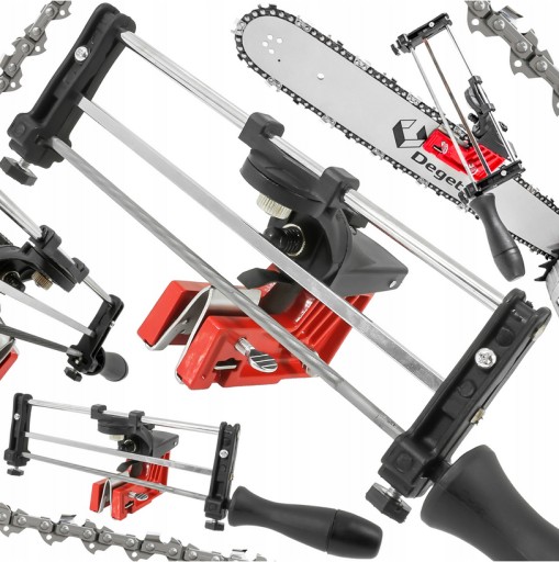 Ostrzałka ramowa do łańcuchów DEGET to niezawodne urządzenie przeznaczone do ostrzenia łańcuchów pił spalinowych i elektrycznych montowana bezpośrednio na prowadnicy pilarki. Umożliwia łatwe i skuteczne ostrzenie łańcuchów. Wystarczy, że zamontujesz w ostrzałce odpowiedni do swojego łańcucha pilnik, a następnie nałożysz ją na prowadnicę pilarki by po kolei naostrzyć każdy ząb tnący, poruszając rączką ostrzałki do przodu i do tyłu.