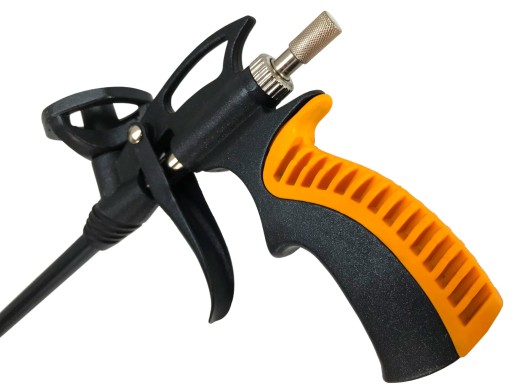 - pistolet posiada metalowy korpus i wygodną rękojeść, wyposażony jest pokrętło które umożliwia regulowanie strumienia pianki.