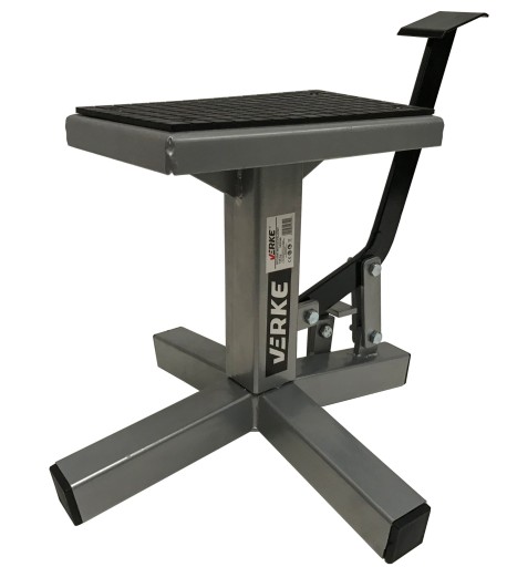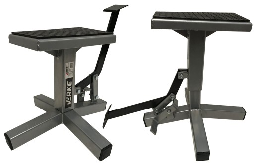 Uniwersalny podnośnik dedykowany dla motocykli typu cross, enduro, trial. Prosty w obsłudze, lekki i przenośny pozwoli na swobodne naprawy w sposób bezpieczny i wydajny a także znacząco ułatwi mycie motocykla. Wysokiej jakości stal użyta do wykonania konstrukcji zapewni jego trwałość oraz stabilne i bezpieczne podnoszenie motocykla. Zastosowanie antypoślizgowej gumy zapewnia wysokie bezpieczeństwo i komfort pracy.