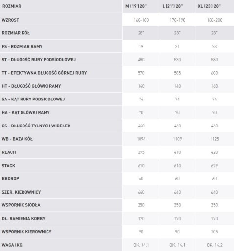 Rozmiar ten będzie odpowiedni dla osób o wzroście 178-190 cm.