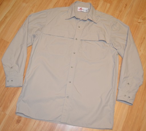 MODNA KOSZULA OUTDOROWA W KOLORZE BEŻOWYM, SUPER ODSZYTA, PANELE WENTYLACYJNE POD PACHAMI ZAPINANE NA ZAMEK, PANELE WENTYLACYJNE NA PLECACH, SKŁAD MATERIAŁOWY NA METCE - ZDJĘCIE, 100% ORYGINAŁ, NOWY MODEL.