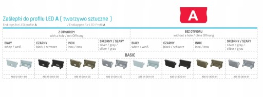ZAŚLEPKA KOŃCOWA/BOCZNA DO PROFILU ALUMINIOWEGO TYPU A LUMINES SZARA, CZARNA, BIAŁA, INOX