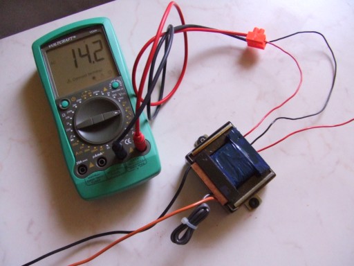 Transformator sprawny 2x14V stosowany w gramofonach Sanyo Fisher, S 9, W 4, G 6 cm.
