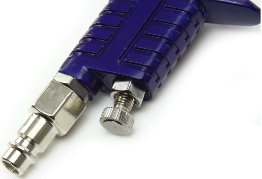 Pokrętło regulacji ciśnienia pozwala regulować ciśnienie powietrza docierającego do pistoletu z kompresora.