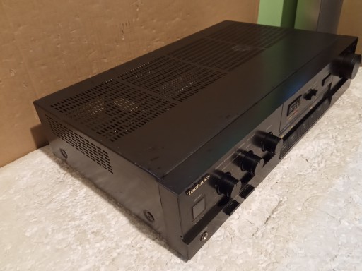 Wzmacniacz z drugiej połowy lat 80-tych : TECHNICS SU-V40 ( trzaski podczas zgłaśniania i kręcenia balansem , kanały grają równo , wejścia i funkcje w porządku , rozwarstwienie między front panelem a bokiem obudowy z prawej strony ! ) .