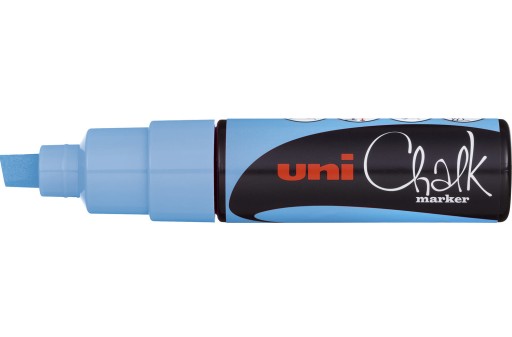 Markery kredowe UNI CHALK przeznaczone są do potykaczy oraz tablic wodoodpornych, szkła, plastiku i innych gładkich powierzchni. Dostępne są w 10 fluorescencyjnych kolorach do wyboru. Posiadają podwyższoną odporność na działanie deszczu i śniegu. Ścięta skośnie końcówka daje możliwość zmiennego, fantazyjnego prowadzenia linii pisania do 8 mm szerokości. Miękka końcówka markerów nie niszczy powierzchni do pisania, dlatego Twój potykacz czy tablica kredowa będą Ci służyć znacznie dłużej niż przy użyciu zwykłej kredy.
