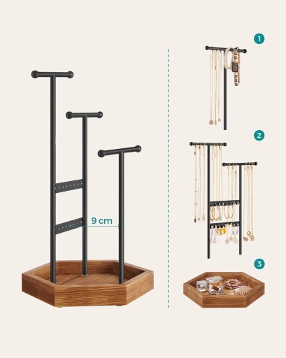 - 3 ramiona w kształcie litery T o różnych wysokościach do przechowywania naszyjników i bransoletek