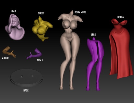 Statuetka drukowana jest w kolorze SZARYM, podzielona na części (jak ja poniższym obrazku) dla łatwego malowania przed złożeniem.