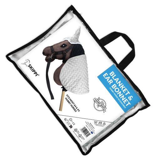 DERKA DWUSTRONNA I NAUSZNIKI SKIPPI DLA KONIA HOBBY HORSE - SZARA I BIAŁA